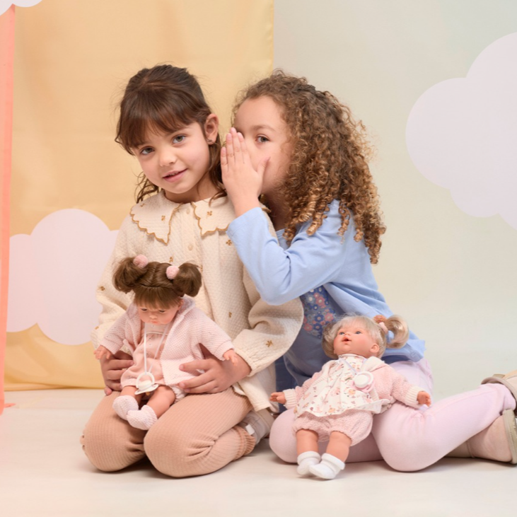 Vera is a beautiful baby who loves to walk. She is wearing a pink dress that matches the jacket and accessories. His body is soft and his limbs are made of vinyl.