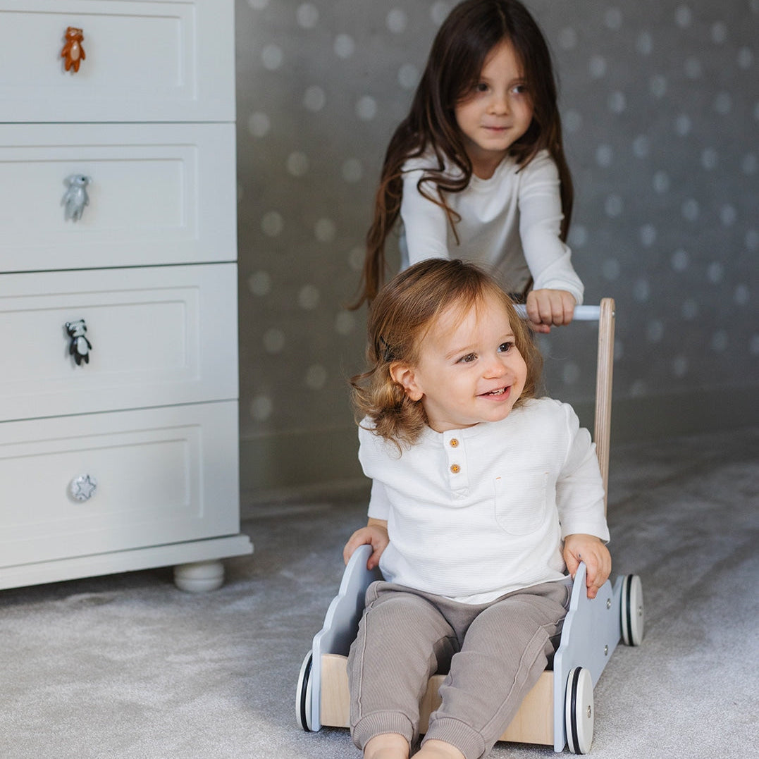 The brand new Larisa and Pumpkin Walker provides fun support for toddlers taking their first steps. The walker is made of natural birch wood, and is extremely sturdy, helping your little ones balance as they learn to stand up and walk on their own. The walker can also be used as a toy wagon by children of all ages, to transport precious toys.