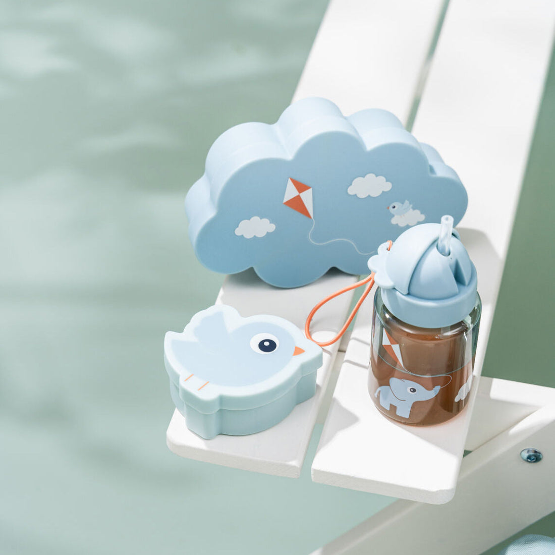 - Blue set including straw bottle, snack box, and lunch box