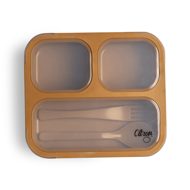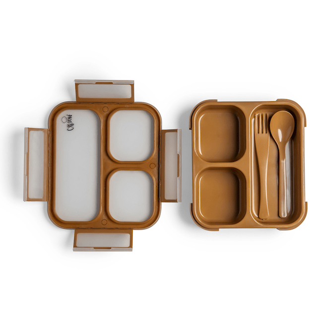 - Stores food in 3 compartments for a balanced meal