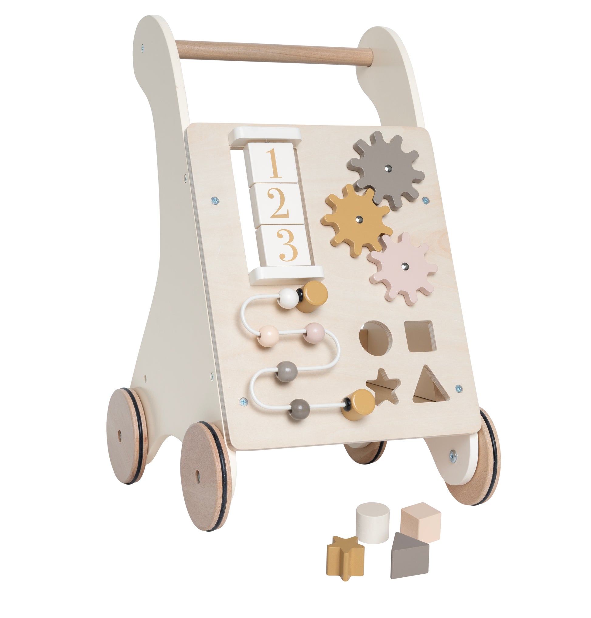 The perfect companion for taking their very first steps! Our new activity stroller comes in a nice earthy color and is ready to help your little one when it's time to start walking. There are also fun activities that will stimulate the child for a long time and on the back of the stroller there is space and room to store all the child's favorite toys. Made from FSC™ certified wood (FSC™C194598).