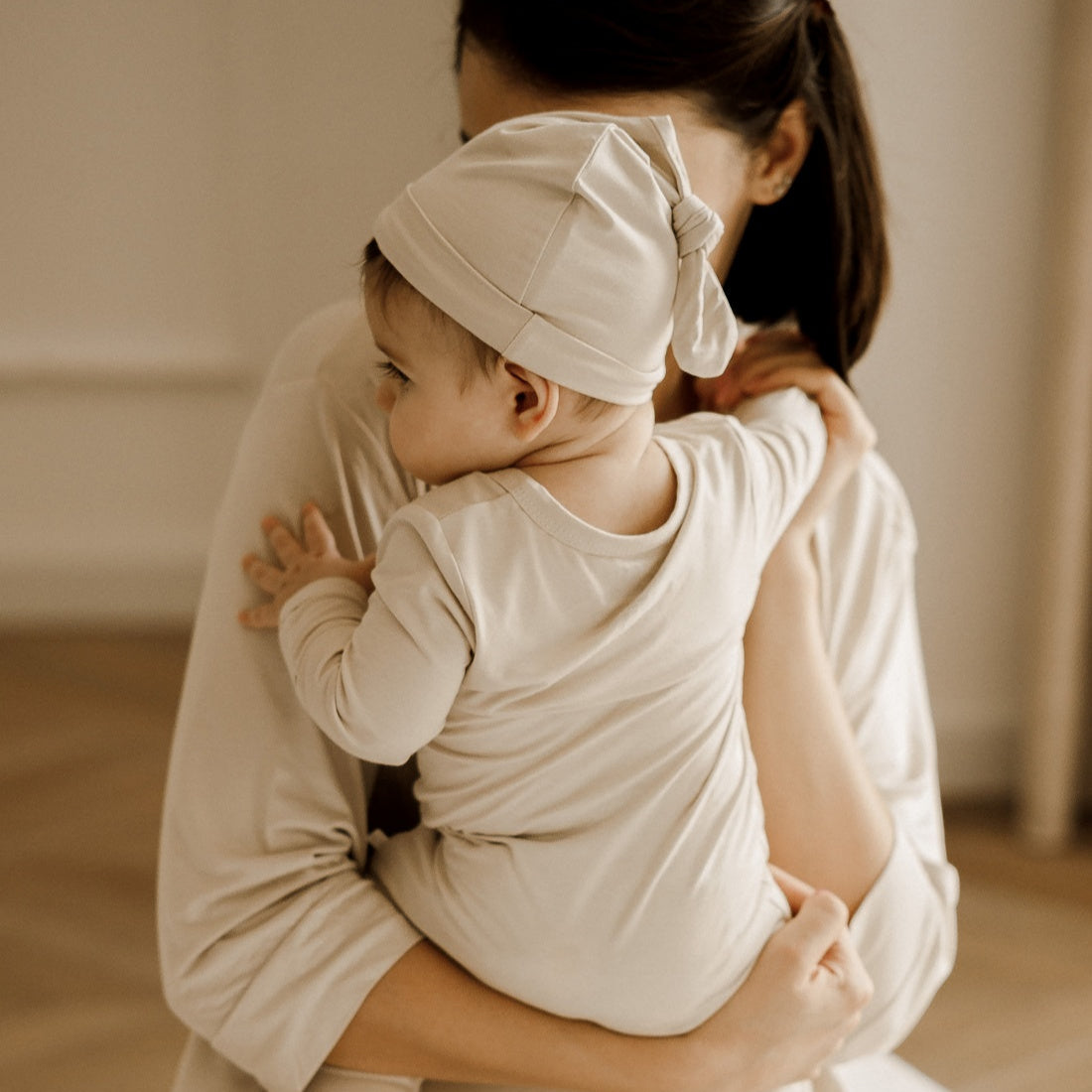 A cute baby beanie made from soft bamboo material, matched perfectly with our baby rompers, comes in 4 lovely colors.