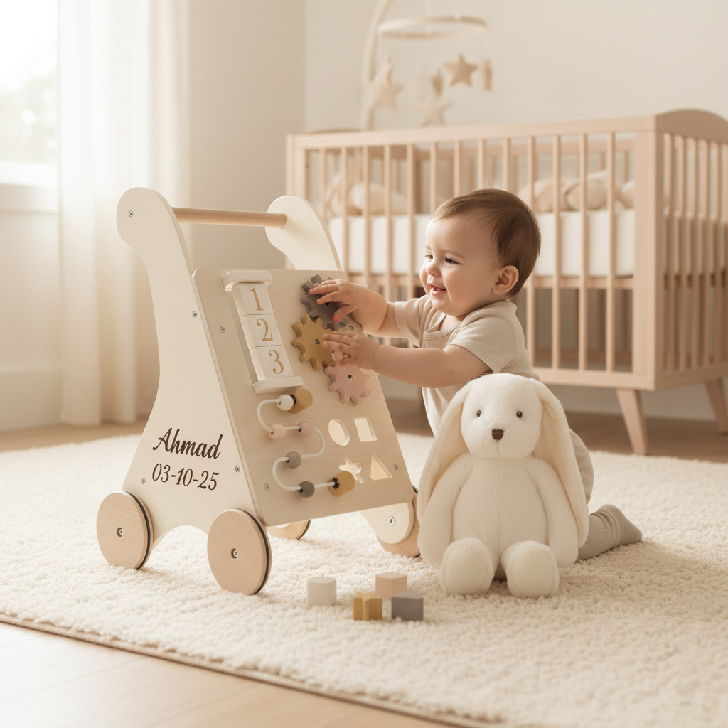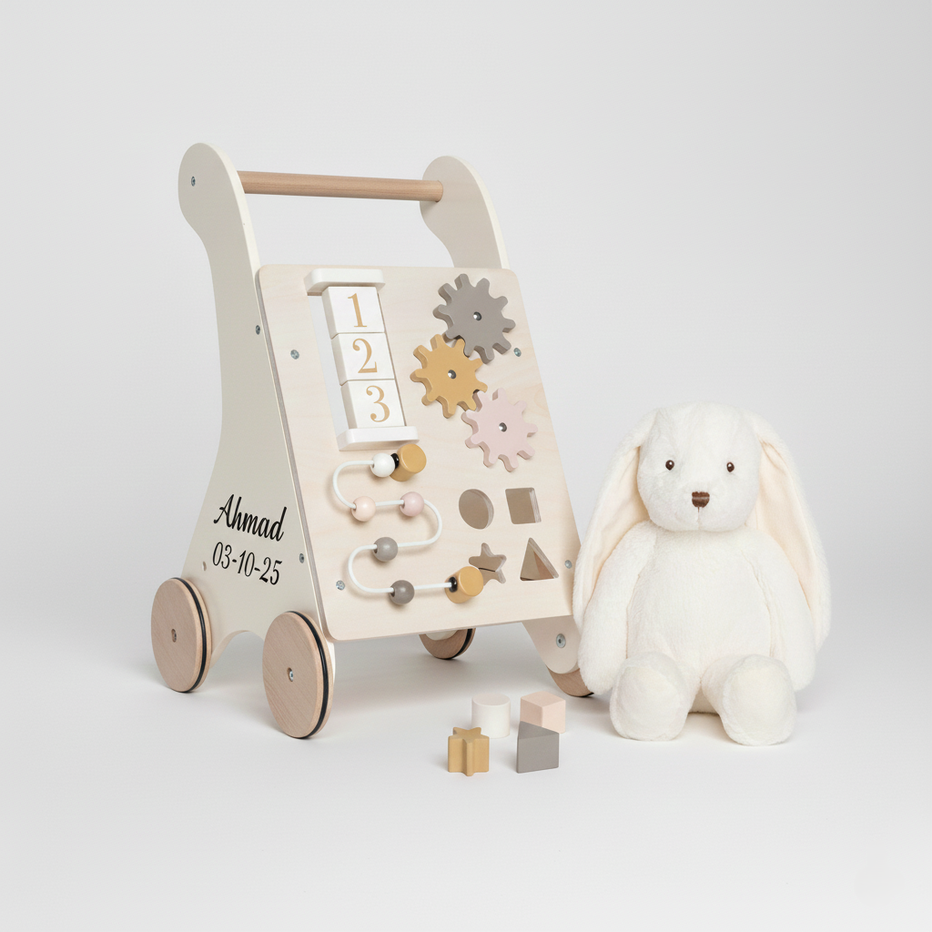 A multi-functional wagon designed to support walking, balance, and fine motor skills while keeping your child engaged:
