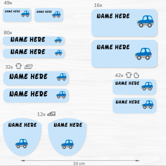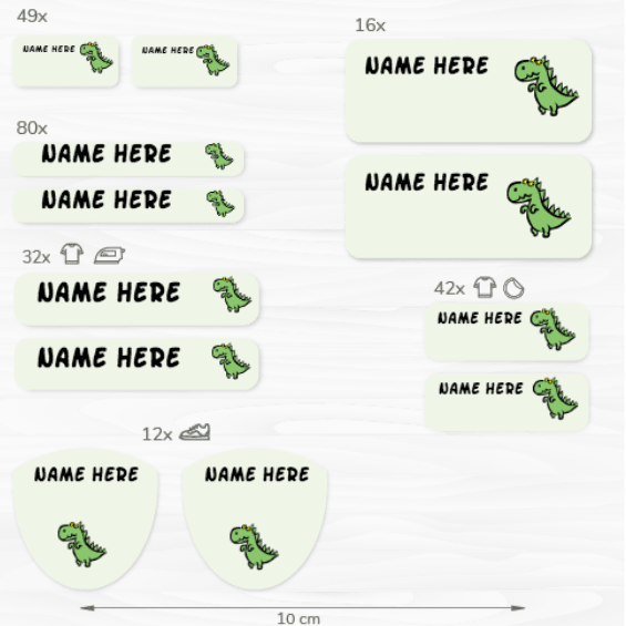 231 assorted labels to mark school uniforms, lunch boxes, school bags, stationery …