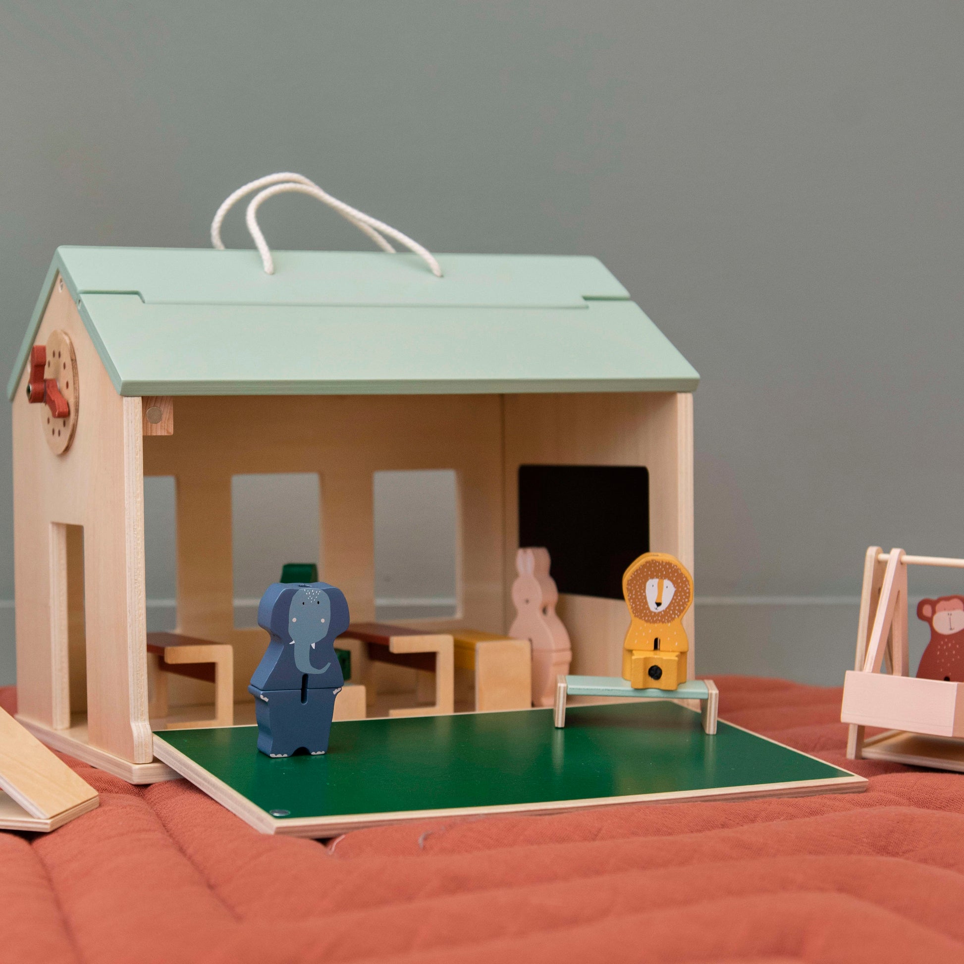 Time for school! With this fun school set, you can let your imagination run wild. It's the perfect trigger for creative role play. Children will play out different scenarios and stories, guided by their infinite imagination. While playing, they enhance their social skills. They learn to see things from other people's point of view which improves their capacity for empathy. The school and accessories are_made of 100% FSC©certified wood. All paints on this product are water-based, safe for children and non-toxic.